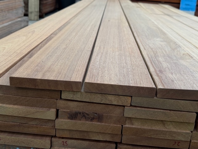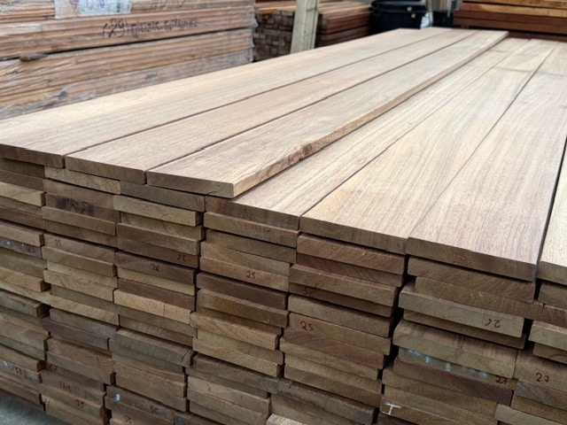 L’Angélique, aussi appelé teck de Guyane ou teck du Suriname, est un bois exotique très durable, naturellement classé en classe d’emploi 5 grâce à sa forte densité et sa résistance exceptionnelle aux intempéries, à l’humidité, aux champignons et aux organismes marins. La lame de terrasse 21×142 mm profil 2 faces lisses offre une esthétique chaleureuse, avec des teintes allant du brun doré au brun plus soutenu, et un grain régulier. Ce bois est particulièrement adapté aux terrasses, plages de piscine, pontons et ouvrages proches de l’eau. Pour la mise en œuvre, il est recommandé d’utiliser des outils au carbure, de prévoir un pré-perçage et une fixation inox de qualité. Une finition huilée ou un saturateur spécial bois exotiques permettront de stabiliser la couleur et de prolonger la durabilité esthétique de la terrasse.
